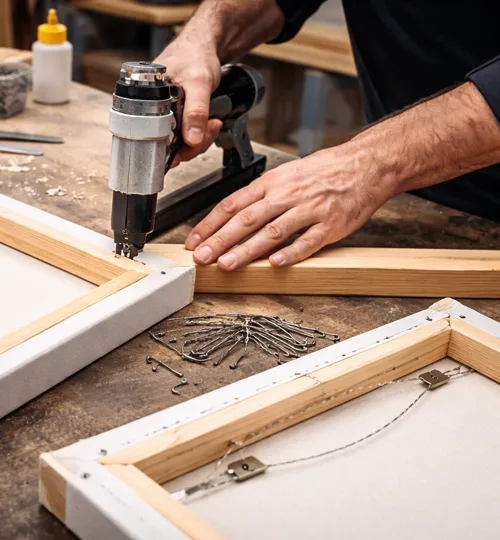 The printed canvas is carefully stretched over durable wooden frames. This ensures a clean, gallery-style finish ready for display.